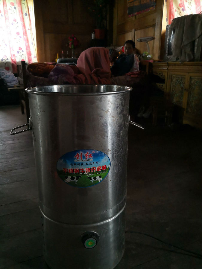 就拿打酥油茶來說,可比以前方便多了,過去打酥油是用木桶手工打,要一整天才打完,耗時耗力,現在買了電動的不銹鋼牛奶分離器,插上電,幾分鐘就制作完。說實話,有了穩定可靠的電力,藏民的生活確實方便多了。