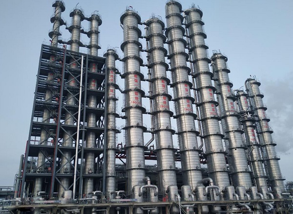 中國化學工程承建的該項目冷氫化裝置采用先進的氫化技術,實現了物料(四氯化硅)的閉路循環,利用率高,降低了多晶硅生產的單位電耗;精餾裝置采用多塔差壓耦合節能技術,極大地提高了三氯氫硅的提純率。