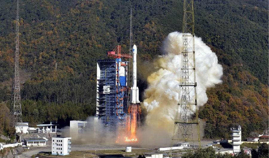 長征三號乙/遠征一號運載火箭點火升空(南勇 攝)