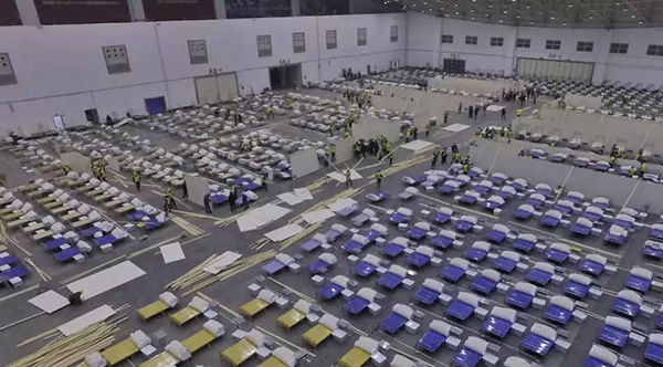 整個武漢客廳“方艙醫院”計劃在A、B、C三個廳布置2000個床,4日已完成C區改建工作。此次增援中,中鐵十一局集團主要負責武漢客廳“方艙醫院”A區12個倉位380多個病床隔板安裝、臨電安裝和門洞、吊頂、大門等施工任務,中鐵十四局集團主要負責武漢客廳東大廳部分改造工程,要求在最短時間內完成施工任務,為早日收治新冠肺炎病人贏得時間。