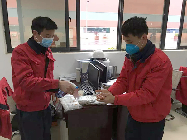 早在春節前,該設備就已經完成了工廠驗收和部分拆機工作。由于工程項目急需,從2月6日開始,車間班組在做好防疫保護的前提下,部分工人提前展開設備打包、裝箱、防護、發運工作,并在設備發運前,詳細地對設備進行了全機消毒處理。