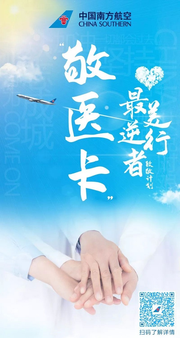 為感謝奮戰在抗“疫”一線的醫務工作者,南航推出“最美逆行者致敬計劃”,首次面向在職醫護人員推出“敬醫卡”。推出“溫暖與共·客戶關懷計劃”,為旅客提供金銀卡延期保級與優惠保級、普卡里程延期等服務。
