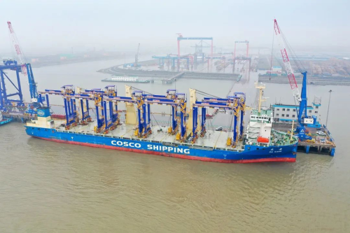 3月25日,中遠海運特運“大三”系列重吊船大康輪在江蘇太倉港成功將8臺橡膠輪胎門式起重機(RTG)順利裝船,這是繼2014年該公司大德輪首航滿載7臺RTG,創造世界同類型船舶一次性裝載RTG整機數量最多紀錄后,再次刷新世界紀錄。