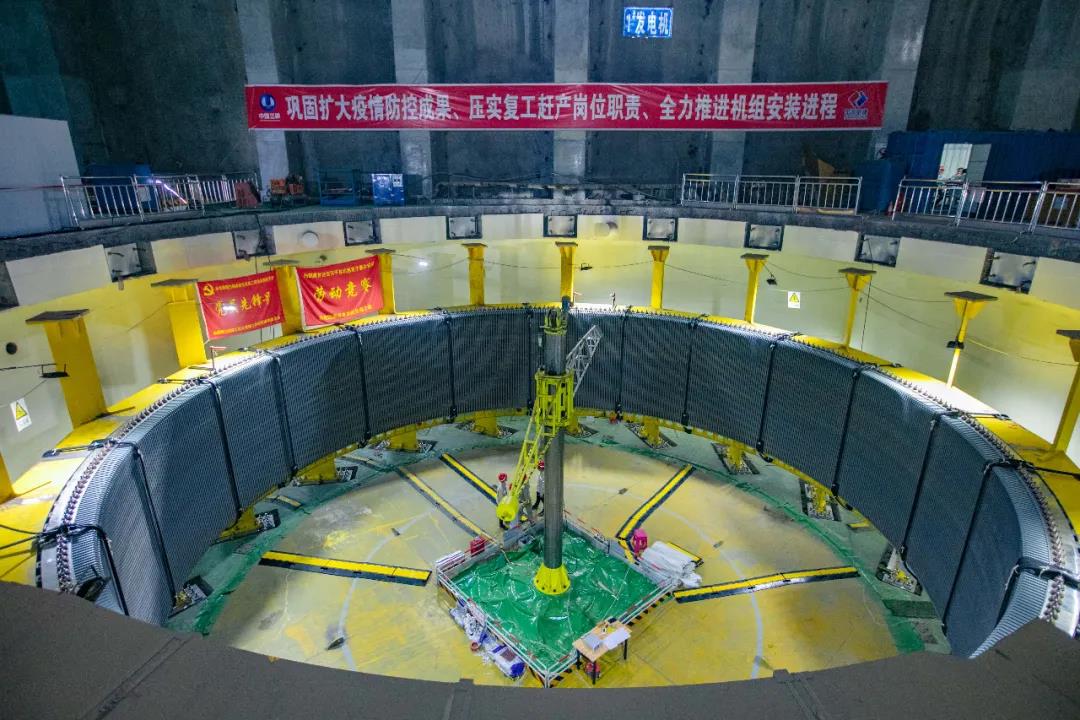 5月14日凌晨4時40分,世界首臺100萬千瓦水輪發電機組定子鐵心在白鶴灘水電站左岸地下廠房1號機坑一次性通過磁化試驗,標志著白鶴灘水電站首臺機組已具備定子下線條件。