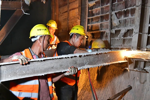 項目通過“智慧施工”,助推安全高效建設。建設者們采用瞬變電磁儀、電磁感應等科技手段,探測施工地層80-100米的地下水、斷層破碎帶、溶洞等風險源,借助超前水平鉆機,運用超前泄水方式提前解除安全隱患。項目還在掌子面增設7級泵站,60臺大功率抽水機接力,先后克服突泥涌水26次、溜塌360余次。建設者們采用軟弱圍巖快速施工法,找準安全與效率最大化的平衡點,五級圍巖單月最高掘進達95米,動態采用6種開挖方式,實現空間、時間、人力效率效益的最大化,確保了隧道重難點地質地段快速掘進。