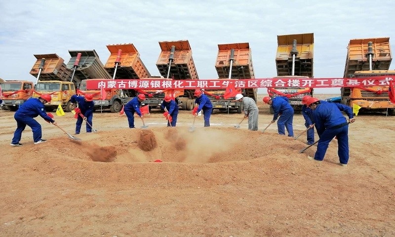 6月28日,中國化學二公司承建的內蒙古博源銀根化工有限公司阿拉善塔木素天然堿開發利用項目職工生活區綜合樓舉行開工奠基儀式,標志著塔木素天然堿項目正式啟動。