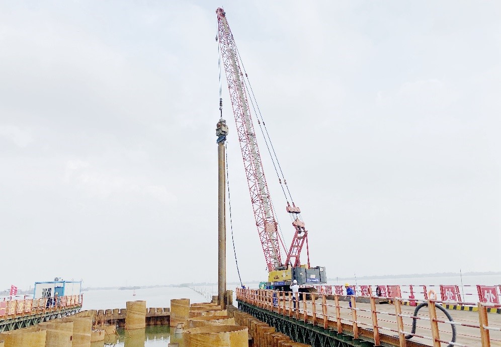 近日,中國化學建投公司安慶項目部勇進路大橋主墩鋼管樁順利合龍,標志著勇進路大橋施工進入主橋主墩承臺施工階段。