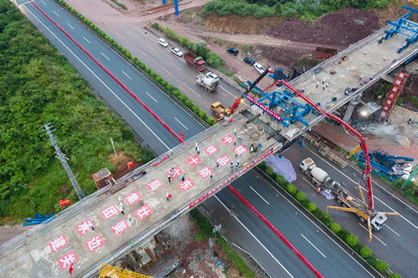 楠木山雙線特大橋全長598.3米,其中連續梁梁體長137.5米,上跨運營中的G7511欽東高速公路,交通繁忙,車流量密集,施工難度大。為確保道路行車安全,中鐵十六局項目部聯合南寧鐵路局和業內專家,對樁基施工、墩身施工、連續梁掛籃兜底施工方案等進行了反復評審論證,通過采用懸臂澆筑施工和支架反力預壓等方式,降低了施工難度和安全風險,確保了臨近高速公路兩側主墩及上跨連續梁安全順利完工。