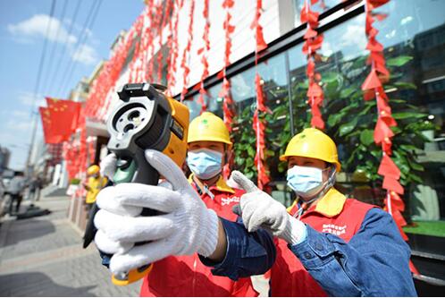 國網長春供電公司員工在10千伏桂林線開展測溫工作,保障假日期間桂林路步行街、商業街正常用電