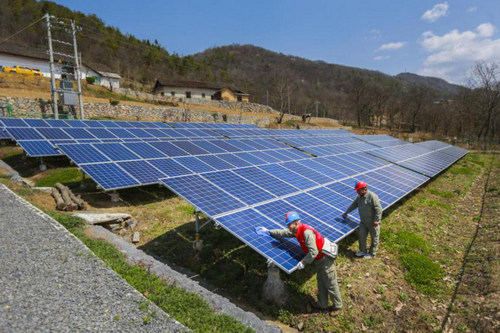 湖北長陽縣供電公司員工維護當地的村級光伏扶貧電站