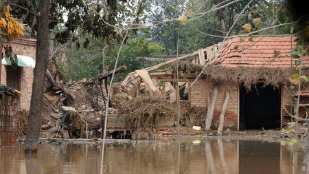 洪水來時,房子像被切豆腐一樣往河里掉。