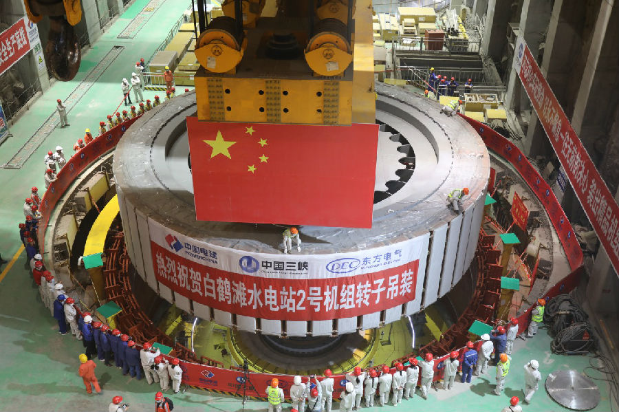 10月26日,由中國電建所屬水電四局安裝的白鶴灘水電站左岸2號機組轉子提前合同工期83天成功吊裝,標志2號機組全面進入總裝攻堅階段,向明年首批機組發電目標又邁出堅實一步。