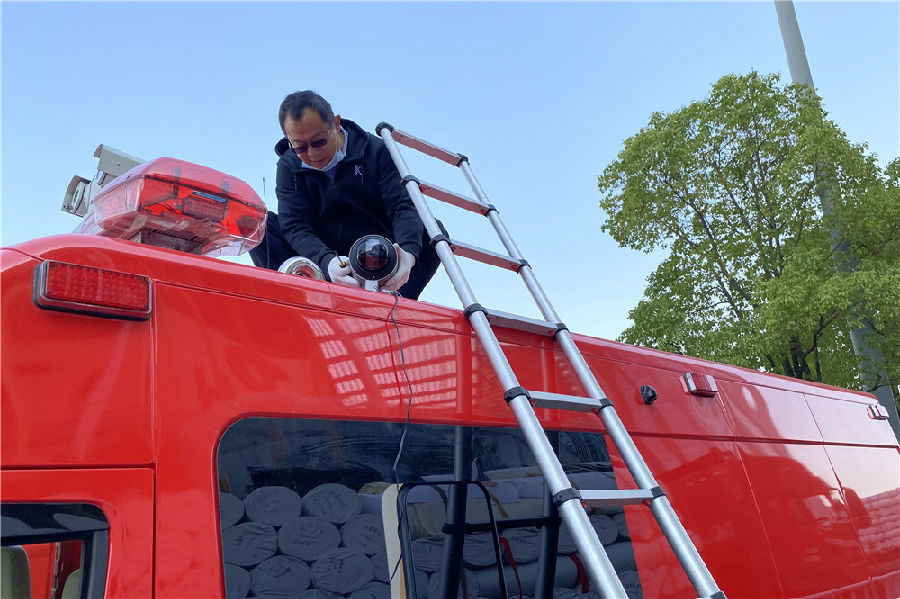 迪愛斯公司技術團隊為參加進博保障的消防車輛安裝5G攝像頭等設備