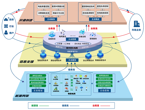 作為傳統主動配電網理念的數字化升級,雄安新區數字化主動配電網在能源網架、信息支撐和價值創造三個層次上重點創新,構建起“一個目標、三大特征、六大引擎”的技術架構,以“業務數字化、數字價值化”為主線全力支撐雄安新區全數字綠色智慧城市建設。