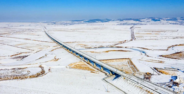 中鐵十四局承擔了牡佳高鐵佳木斯至七臺河段377.5公里的鋪軌任務。該工程地處高寒地區,冬季平均氣溫達到零下19攝氏度,極端最低氣溫達零下35攝氏度。面對低溫嚴寒天氣,建設者需要解決防凍漲、防雪害、冬季施工等多種技術難題。