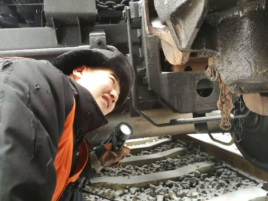 “忽如一夜春風來”,積雪略消融的檢修作業場上,一夜之間,各種鋼管、管線表面早已結了厚厚的一層霜花。作為戰斗在鐵路運輸第一線的檢車員們,正戰天地、斗風雪,在兩行鋼軌外的狹長戰線上,揮動“金戈”,實踐著“不到最后一刻,絕不收兵”的誓言。