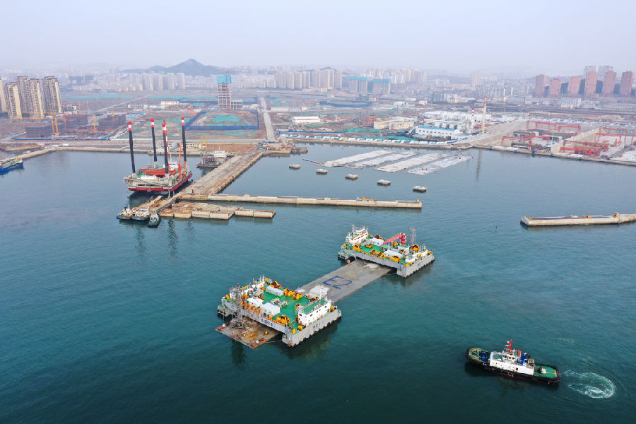 3月9日,歷經16個小時的連續作業,由中國交建投資、中交一航局承建的大連灣海底隧道工程首個標準管節E2成功沉放海底,并與已安裝的E1管節順利對接,各項指標符合設計要求,實現當天浮運,當天完成安裝。