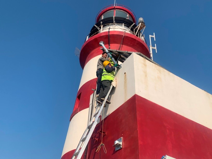 為解決千里巖島通信“最后一公里”問題,中國聯通攜手北海航海保障中心青島通信中心和青島航標處積極部署千里巖島通信基站建設工作。由于島上的燈塔是擁有百年歷史的古建筑,為了保護文物,項目攻關團隊經過兩次上島勘測,確定了以島上附屬建筑物作為設備機房的建設方案。工作人員每次上島勘測的時候,潮水、風向都是制約因素,勘察不易,但更大的難點是所有安裝物資均要漂洋過海運送。因為島上沒有電,必須使用太陽能供電設備,所以聯通施工團隊只能通過租用漁船的方式,在海上行駛7、8個小時,將45塊30公斤的太陽能光伏板、120個35公斤重的鉛酸電池以及幾噸重的鍍鋅板、電池架鋼槽等安裝物資搬運到島上。