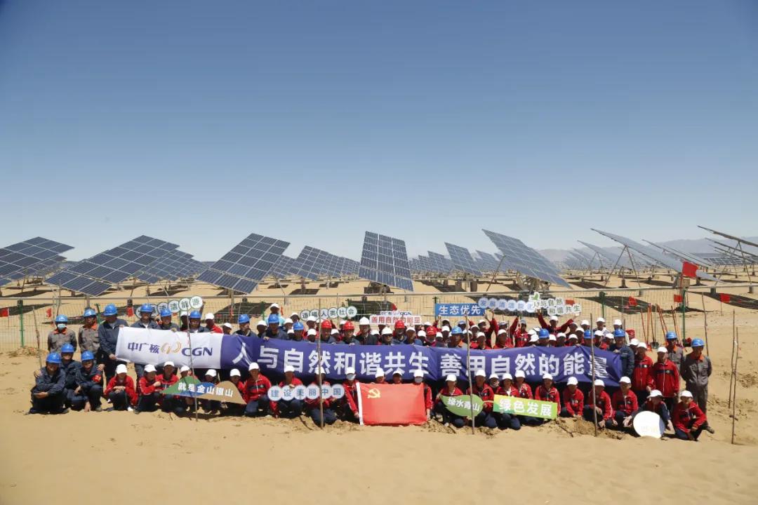 6月5日,第50個世界環境日之際,中國廣核集團(簡稱中廣核)在內蒙古庫布其沙漠朔方光伏電站組織開展“百人植樹”活動。兩年多以來,通過“板上發電、板下種植、板間養殖”的立體化新型產業循環方案,中廣核已在庫布其沙漠實現有效治沙2.7萬畝。