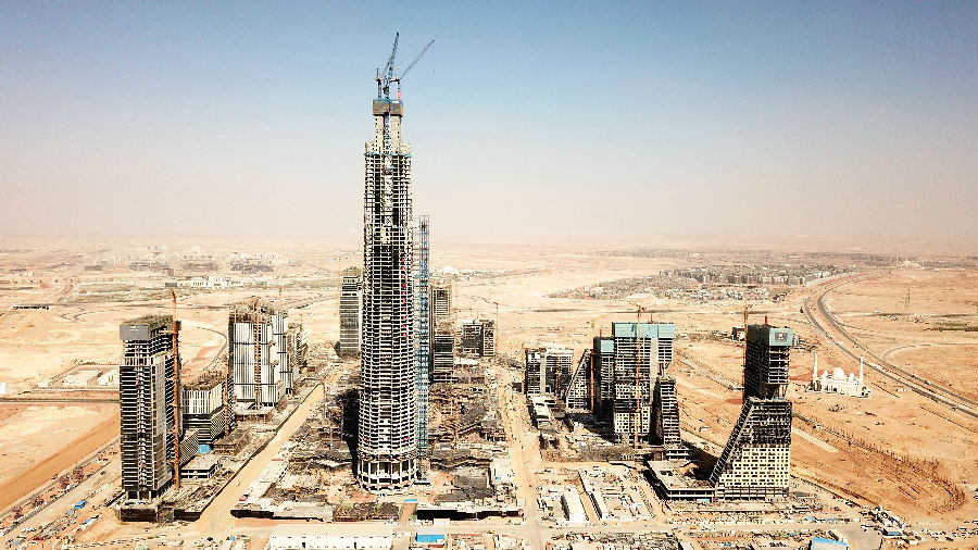 埃及新行政首都CBD標志塔項目于2018年5月2日動工,是一個集辦公、酒店、商業、觀光等功能于一體的復合業態超高層建筑。項目總占地面積6.5萬平方米,建筑面積26.2萬平方米,地下2層,地上78層,結構高度373.2米,塔冠最高點385.8米,被譽為“非洲第一高樓”。
