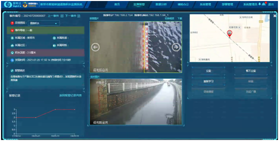 同方股份慧眼達人工智能橋涵道路積水監測系統全力確保城市交通安全度汛。在新鄭市城市管理局引入的該檢測系統中,相關設施已在市內重點易積水路段安裝完成,在降水期間平均每兩秒傳回一張現場圖像并在后臺自動分析,當降水量超過閥值設定范圍,系統主動報警,為抗洪監測預警提供了極大幫助。