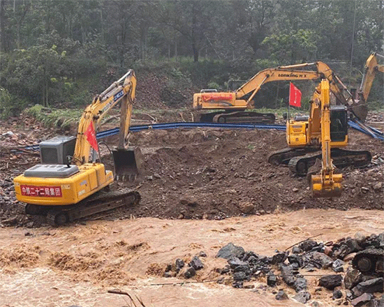 7月22日晚,位于河南南陽市淅川縣的中鐵二十三局集團澠淅高速項目大瀏域隧道進口處突發洪水災害,施工現場及附近生活區出現重大險情。項目部第一時間組織救援突擊隊和機械,迅速將受困施工人員及附近受困村民轉移,并安排充足的食品、純凈水等生活用品,以人民群眾生命安全為中心,把災情損害降到最低。目前,已解救9名受困群眾,并轉移至淅川縣三橋賓館。