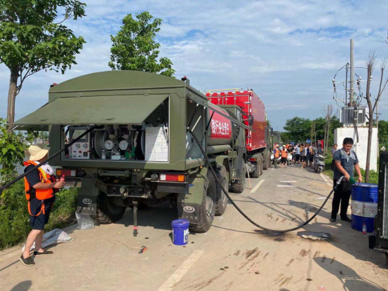 本次抗洪應急裝備中特別配備的7000升越野加油運輸車是可移動流動的大容積加油站,一次性可從遠地運輸7000升汽柴油,保障整個抗洪陣地所有單元的加油任務。該裝備為救援現場提供了系統性的解決方案。