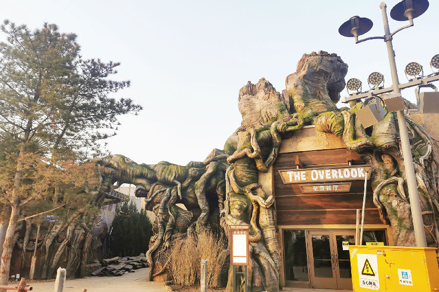 “功夫熊貓蓋世之地”是環球影城中唯一以中國元素為主題的園區,也是全球首個以“功夫熊貓”為主題的景區。園區中大量雕刻精細的仿古中式建筑、形象逼真的樹木、長滿青苔的石頭墻、紋路清晰的壓印地面、極具質感的瓦片……這些都由工匠們通過特殊工藝和材質雕刻上色而來。