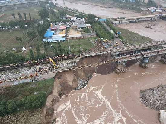 10月8日21時20分,經過中國鐵建等單位50余小時的緊急搶修,受強降雨影響中斷行車的南同蒲鐵路上行線(北向)實現搶通。
