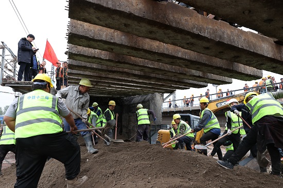 接到中國鐵路太原局集團的搶險通知后,中國鐵建所屬中鐵十二局集團、中鐵十四局集團、中鐵十七局集團等單位迅速調集人員、設備、物資,爭分奪秒趕赴搶險指定位置,成為第一支銜命到達現場、即刻投入搶修作業的隊伍。