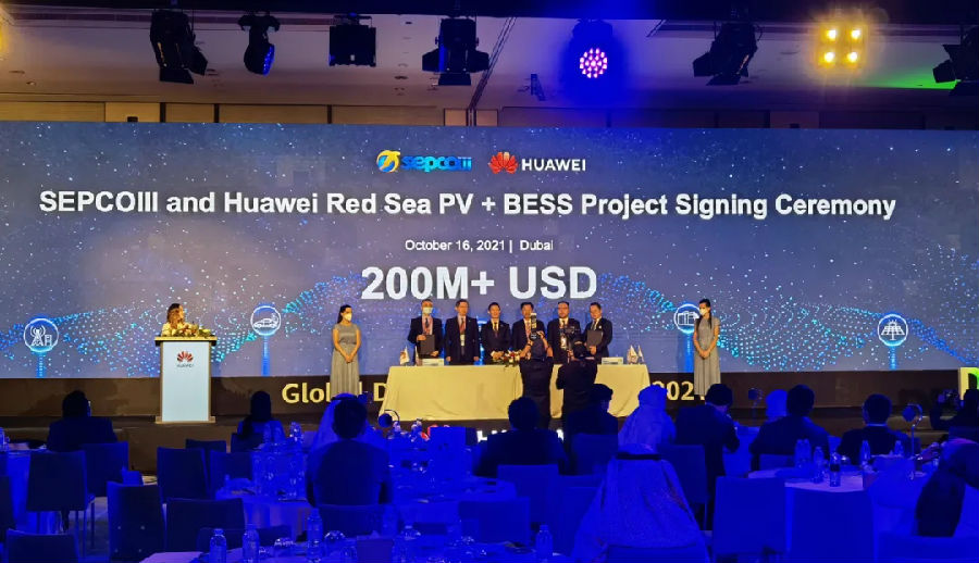 近日,在 2021全球數字能源峰會上,中國電建所屬山東電建三公司與華為數字能源技術有限公司簽訂設備采購合同。作為該項目EPC總承包商,中國電建將攜手華為數字能源為沙特紅海新城提供智能儲能系統,共同以“中國智慧”助力沙特打造全球清潔能源和綠色經濟中心。