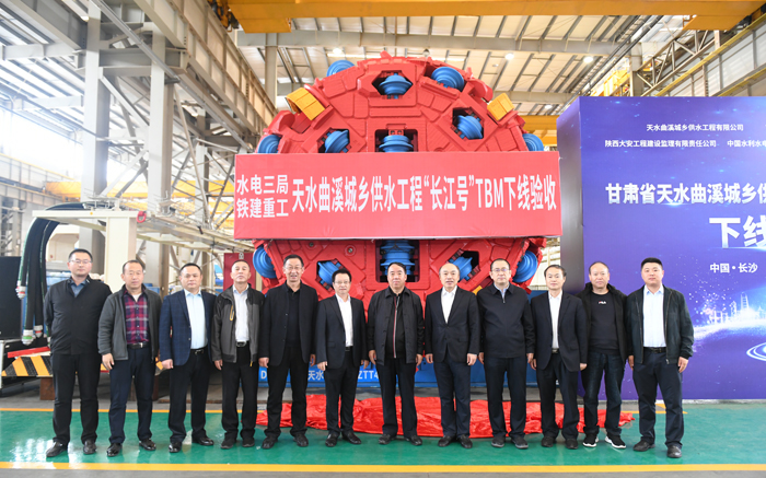 日前,由中國電建水電三局與中國鐵建重工集團共同研發的國產超強脫困型TBM(隧道掘進機)“長江號”在湖南長沙下線,將用于天水曲溪城鄉供水工程輸水隧洞進口段約13.4公里的掘進施工任務。