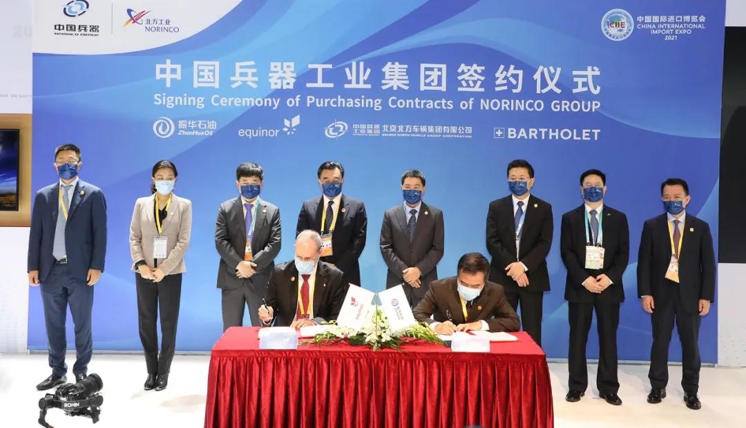 11月4日晚,第四屆中國國際進口博覽會在上海開幕。5日下午,兵器工業集團在展區現場開展進口簽約活動,北方公司振華石油控股有限公司與挪威國家石油公司簽署原油長期采購合作備忘錄,并圍繞碳減排技術及排放配額交易等議題展開交流,為履行2030年前實現“碳達峰”、2060年前力爭實現“碳中和”目標貢獻力量。北京北方車輛集團有限公司與瑞士巴特萊集團簽署索道裝備采購合同,進一步拓展雙方長期友好合作的深度和廣度。