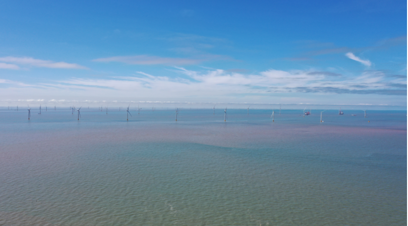 此次并網的東臺五期項目離岸距離約37公里,所在海域具有典型的輻射沙洲地形特征,海床泥面標高較高,水深極淺,數臺風機機位地處高灘位,是國內少有的具有離岸型潮間帶特點的海上風電場,也是現階段國內綜合施工難度最大的海上風電項目之一。