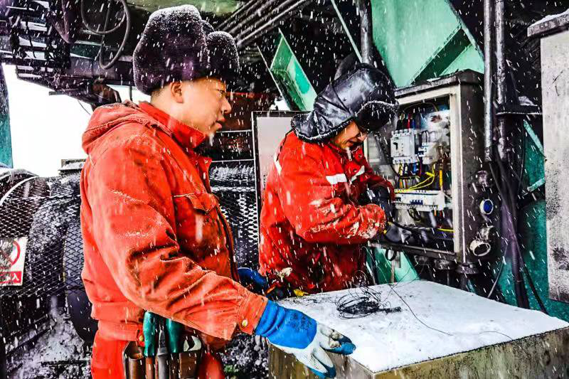 圖為國家能源集團準能集團哈爾烏素露天煤礦的電工冒雪檢修設備