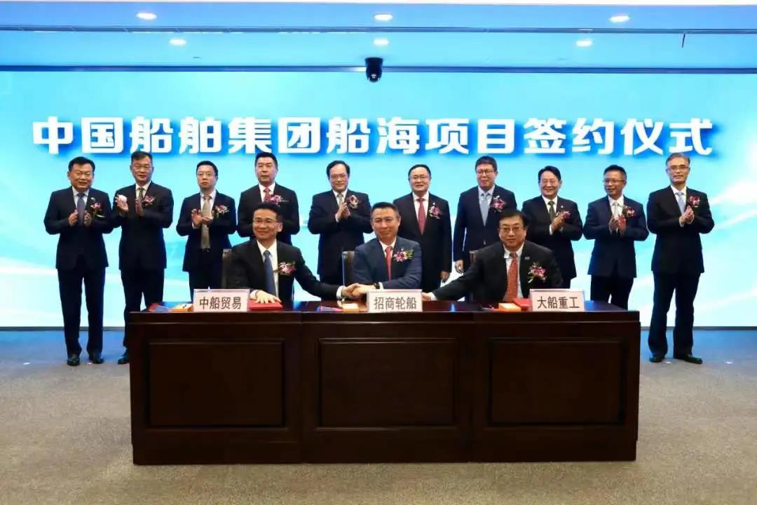 12月17日,在中國船舶集團船海項目集中簽約儀式上,中國船舶大船集團聯合中船貿易與招商局集團旗下招商輪船簽署1+1艘大型LNG運輸船合作意向書。