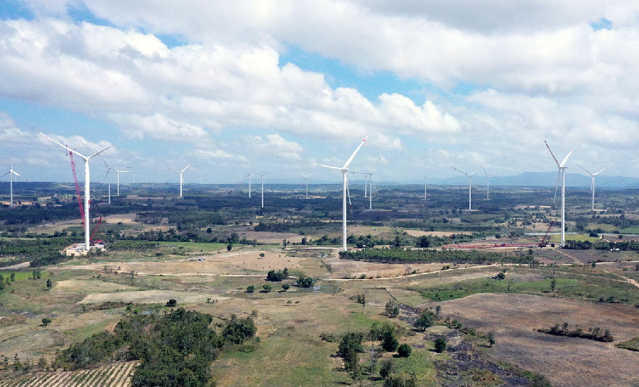 1月15日晚,由中國能建設計施工的越南目前最大的陸上風電項目——越南嘉萊風電項目蔥龍鄉155兆瓦風機吊裝全部完成。