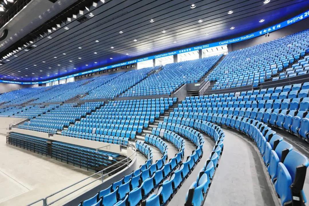 首體冰場不僅是“第一片冰場”,還被稱為“最美冰場”。首都體育館頂部采用懸掛超薄膜單元系統,搭配聲光電全新投影技術,在觀賽過程中全力為觀眾營造出夢幻的視覺體驗,此外館內還改造了除濕、送風系統以及看臺座椅等,座椅采取并列式排布,調整了腿部空間與座椅間距,保障場館賽時環境,使現場觀眾觀賽體驗更為舒適。
