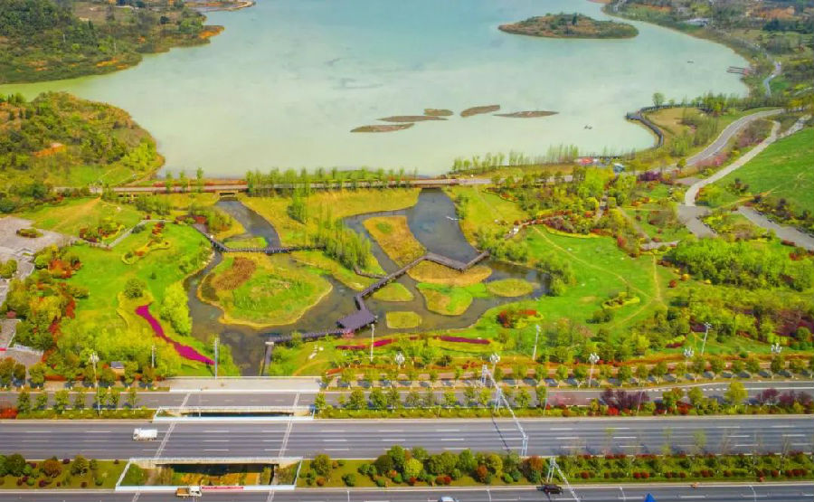 該公園占地面積約8000畝,以“增量BOT+整體運營”模式實施,是國內單體最大的海綿城市濕地公園項目。在規劃建設過程中,項目團隊秉承自然、生態、和諧、人文的理念,借助海綿城市建設手段,以生態海綿、彈性海綿、活力海綿、智慧海綿為目標,綜合采用“滲、滯、蓄、凈、用、排”等措施,提高城市防洪能力和生態韌性,將原本的連片濕地改造成為海綿城市公園及城央“會客廳”,為國家級新區繪就“望得見山、看得見水、記得住鄉愁”的美麗畫卷。