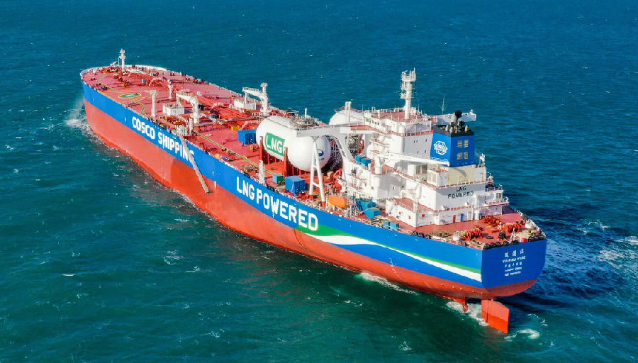 2月28日,中遠海運能源正式接入全球首艘LNG雙燃料超大型原油輪(VLCC)“遠瑞洋”輪,船舶交接船儀式在中國船舶集團旗下大船集團舉行。該輪的交付標志著中遠海運在大型油輪的綠色、環保和節能技術應用中走在了世界前沿,在全球能源轉型的背景下,對大型船舶節能減排,以及航運業推動“碳中和、碳達峰”目標落地起到了積極的示范引領作用,具有里程碑意義。