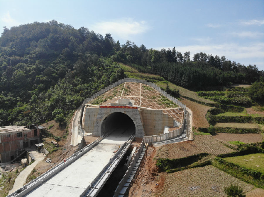 貴南高鐵全長481公里,是我國西南地區首條設計時速350千米的高速鐵路。朝陽隧道全長12734米,最大埋深432米,位于貴州省黔南布依族苗族自治州荔波縣,是貴南高鐵重點控制性工程。該隧道穿越“中國南方喀斯特”世界自然遺產地和“世界人與生物圈保護區”,喀斯特地貌廣布,地質環境極端復雜。隧道洞身穿越8059米的可溶巖段落,建設中累計遇到大小巖溶1000余個,隧道出口日最大涌水量超過160萬立方米。為確保工程建設安全平穩推進,朝陽隧道設計采用“2橫洞+1斜井+2平導+1通風豎井+17橫通道”的輔助坑道施工方案,輔助坑道總長達10538米,隧道建設規模、隧道涌水量和溶腔數量均創造了我國西南高鐵建設之最。