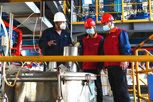 國網吉林供電公司員工走訪吉林匯康制藥有限公司,了解企業用電難題。