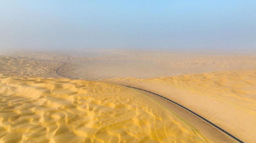 新疆烏尉公路線路總長度1305公里。其中的S254線尉犁至且末公路連接尉犁縣和且末縣,位于天山南坡與阿爾金山北麓之間的塔里木盆地,穿越塔克拉瑪干沙漠腹地,全長約334公里,其中沙漠路段307公里,是目前世界上在建里程最長、流動沙丘分布最廣、施工條件最惡劣、施工難度最大的沙漠公路。