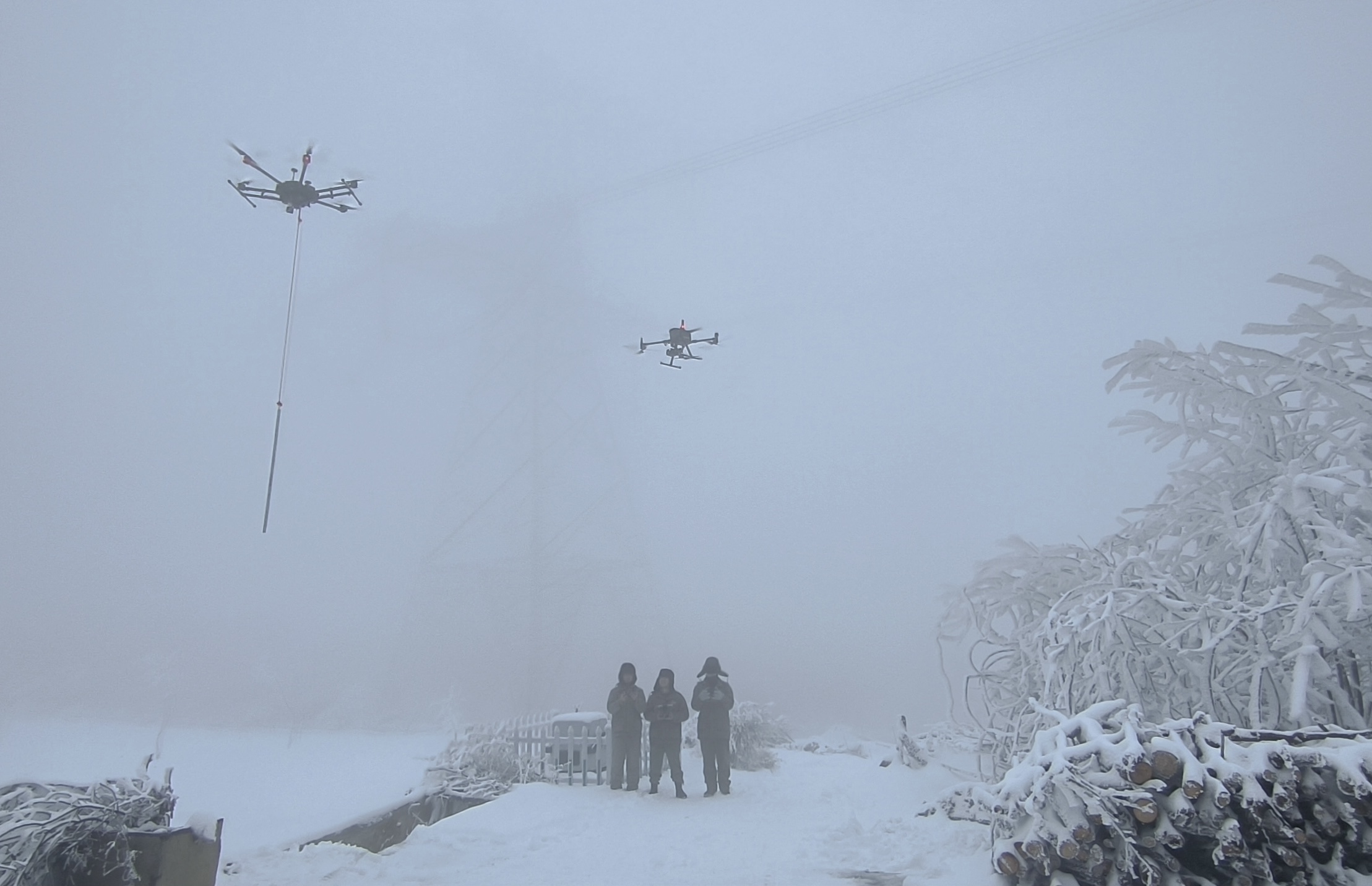 湖北出現大范圍雨雪冰凍天氣。2月2日6時,位于湖北秭歸縣的500千伏盤宜線形成了厚厚的覆冰。國網湖北電力設置的“觀冰”監測裝置將預警信息發送到監控員手機上,工作人員根據預警信息,打開無人機機巢操作系統,一架無人機騰空穿越可見度僅5米的云層,自主對該區段多基桿塔進行巡檢。10時許,一架六旋翼無人機下方懸掛的條狀重物,撞向500千伏盤宜線地線,線上的覆冰隨著撞擊掉落。