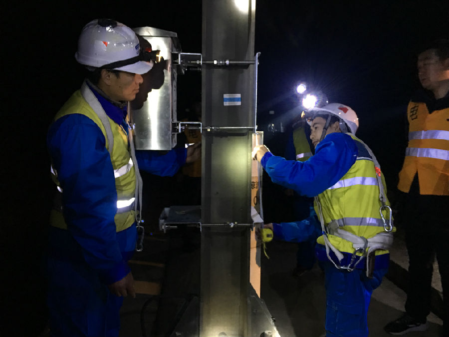 本次視頻補強工程是高鐵既有線施工,在確保圓滿完成施工任務的同時,還要保證京滬高鐵白天的正常行車,因此,所有施工工作必須在凌晨0點30分至4點30分之間的“天窗點”完成。為確保高效、圓滿完成好工作任務,中國通號京滬高鐵視頻補強工程項目部采取“全線推進、分段施工”的方法,每天安排30余組作業隊、1300余人同時在京滬高鐵全線作業。為確保夜間施工的安全、高效,項目部有針對性地制定了《高鐵機具、材料上線登記表》和《高鐵作業人員登記表》。同時積極創新工作方式方法,突破以往敷設電纜的方式,采用了穿線器、光電纜、滑輪相配合的方式,有效減少了電纜阻力,解決了電纜磨損問題,大大提高了工作效率。經過133天的奮戰,圓滿完成了全線1318公里24個車站、235.06公里路基地段、310處橋梁救援疏散通道、電力分相視頻監控補強工程和路基段兩側各1條24芯光纜和電纜的敷設、接續和控制箱安裝等施工任務。