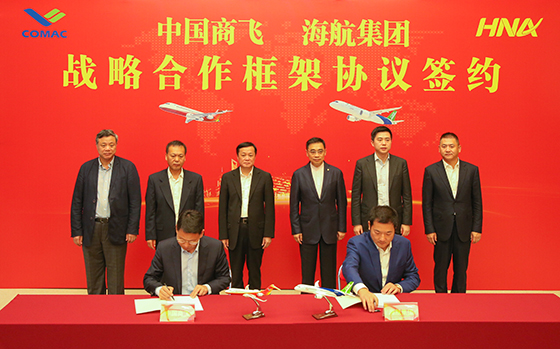 2018年6月2日,中國商飛公司與海航集團簽署戰略合作框架協議,雙方將在飛機采購和運行、航空市場開拓、航空維修與客戶服務等領域全面合作,共同推進國產民機市場化、規?;洜I。