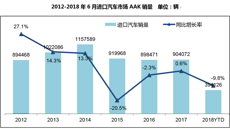 2018年上半年,在中美貿易摩擦及關稅政策調整背景下,中國進口汽車市場波動較大,呈現供需雙降,行業厙存大幅波動,市場結構深度調整等特征。