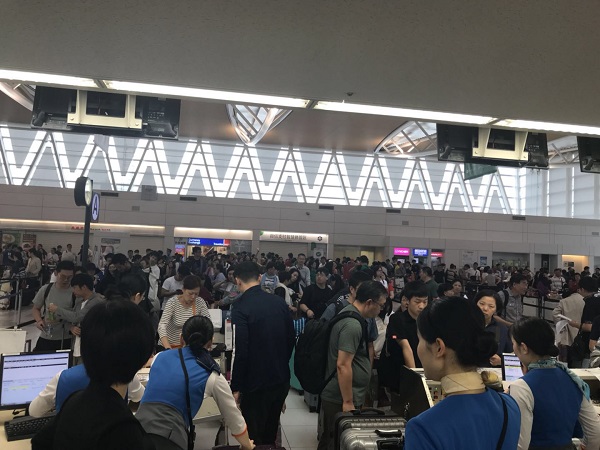 9月8日的札幌機場國際候機樓里已是人山人海,東航浦東飛往札幌的MU279航班已于上午8時46分起飛。