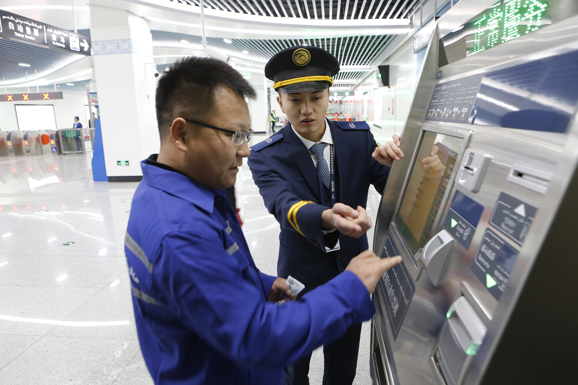 乘客們興奮的乘坐從八樓站開往國際機場站的新疆第一條地