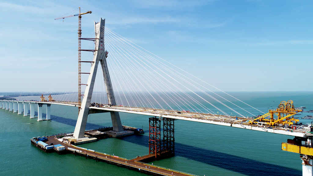 建設過程中,施工團隊先后攻克了重腐蝕海域超大直徑與多層主筋鋼管復合樁基礎施工技術、海洋環境大體積混凝土溫控施工技術、空間復雜曲面索塔施工技術、強臺風登陸區主橋大跨徑鋼箱梁雙懸臂吊裝施工技術、跨斷裂帶引橋大節段鋼箱梁整跨吊裝施工技術及強對流環境移動模架多跨現澆連續箱梁施工技術等一系列關鍵技術,有效確保了大橋的施工進度和質量。